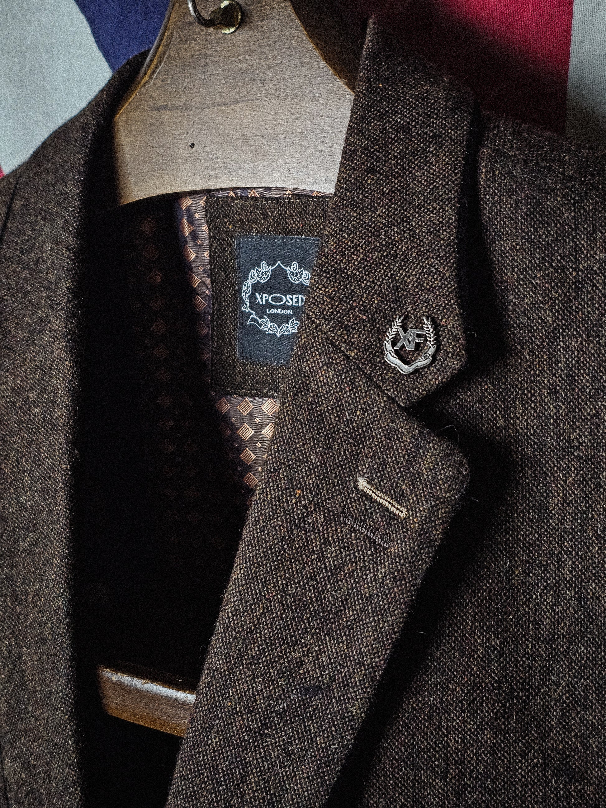 XPosed London Tweed Sport Coat Jacket Vintage Velvet Sz 44R